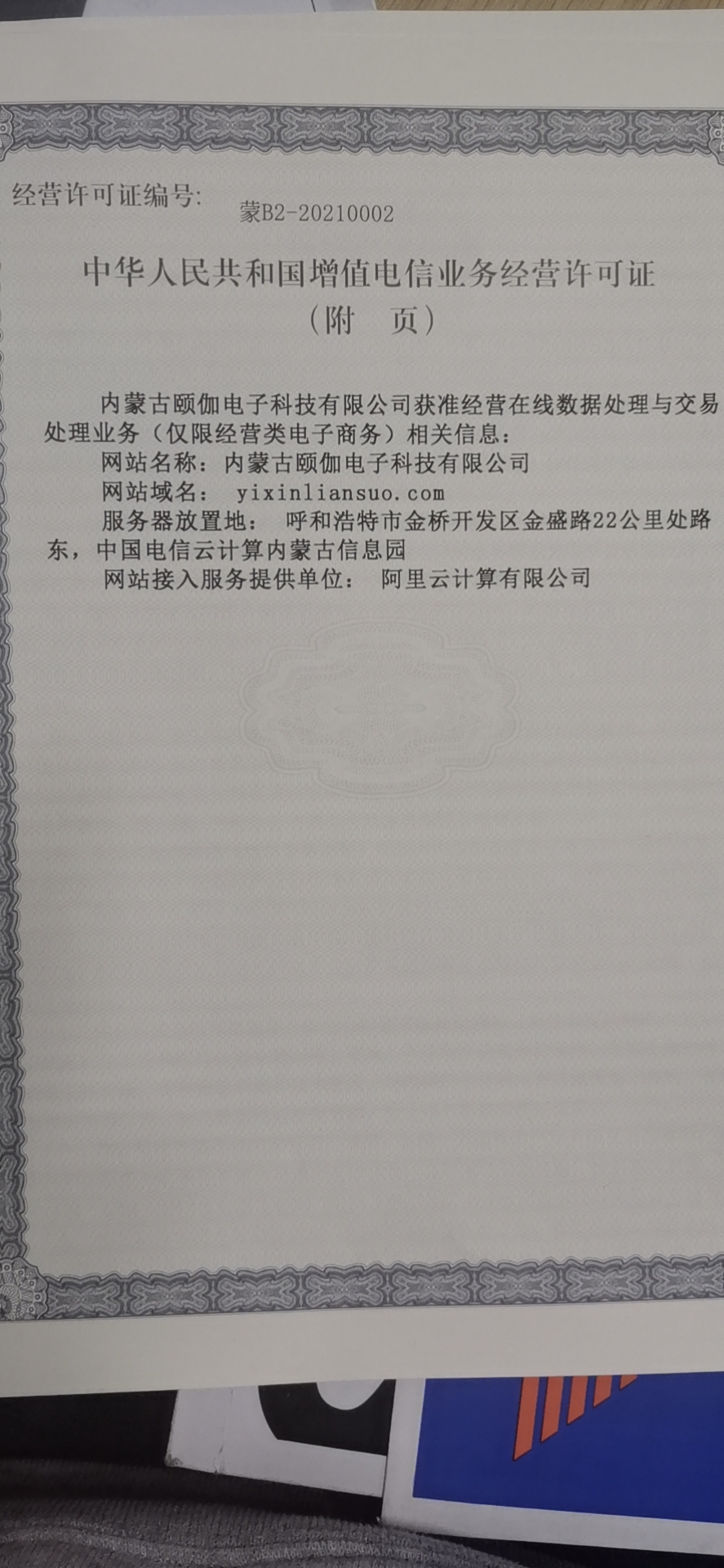 電信增值許可證 蒙B2-20210002